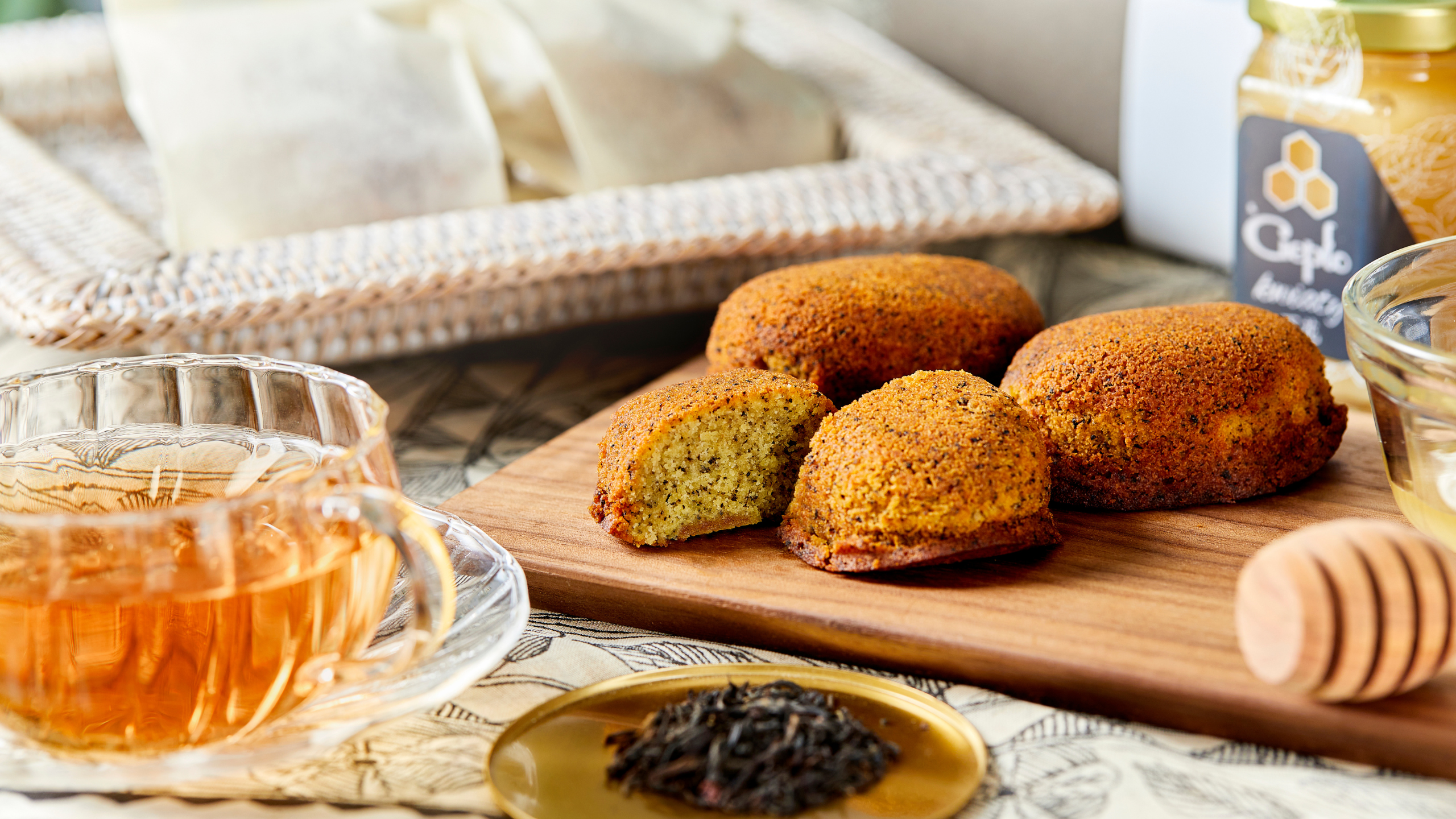 生はちみつたっぷり濃蜜マドレーヌ工房で丁寧に焼き上げたマドレーヌに、ボダイジュはちみつの豊かな風味を閉じ込めました。爽やかな香りとしっとりと広がる濃蜜な甘みが上質な味わいを引き立てます。